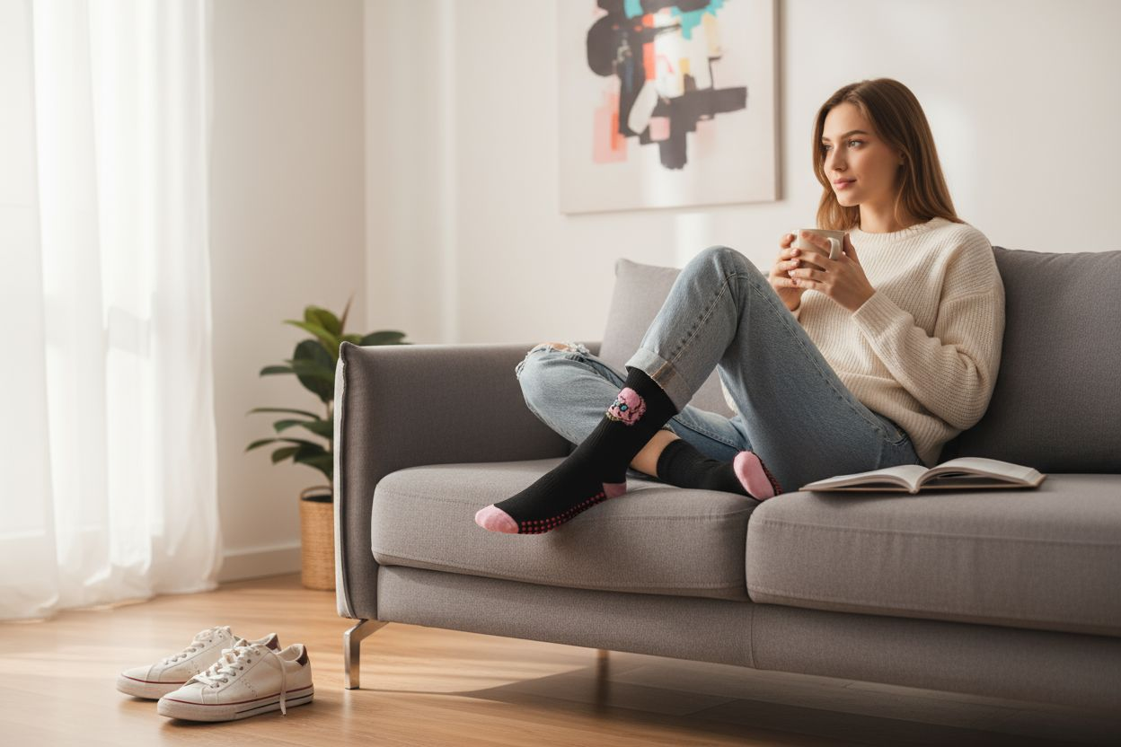Calceta antideslizante en color negro.