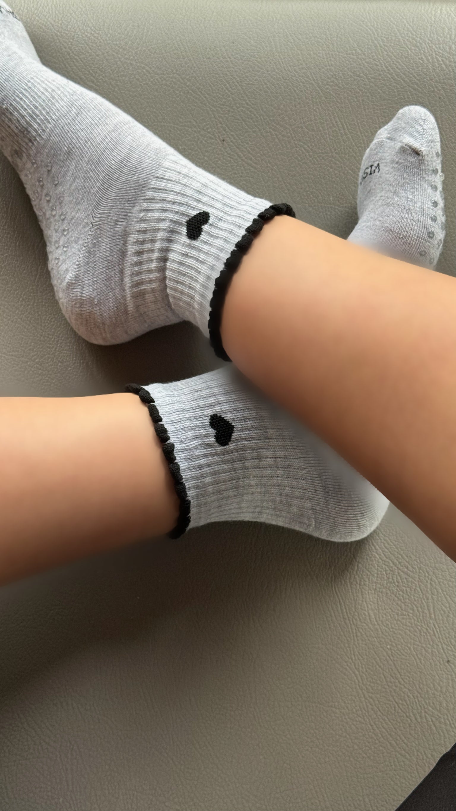 - Detalles: Borde rizado en negro y corazones a los costados.